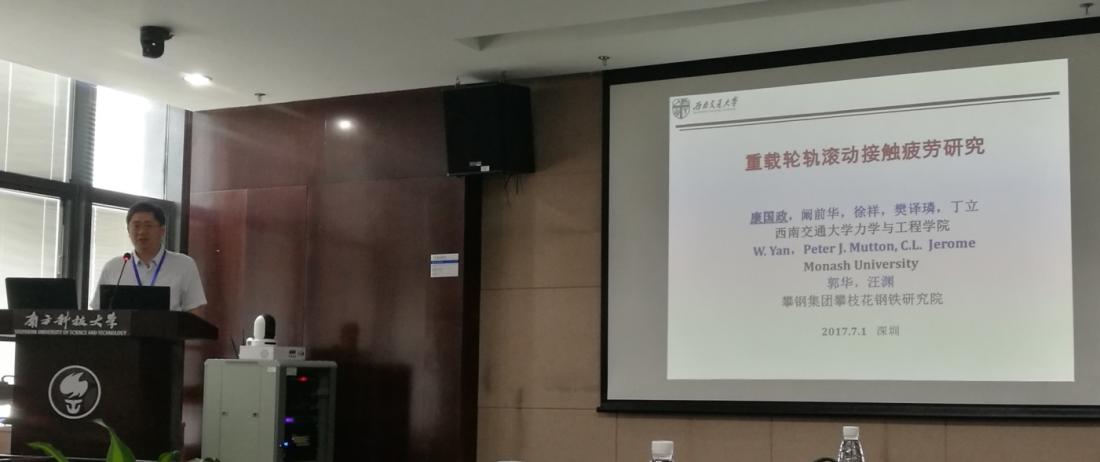 本次青年沙龙由中国力学学会理事会副秘书长、清华大学工程力学系陈常青教授和南方科技大学黄克服教授共同主持。黄克服教授介绍了南方科技大学的发展状况和力学学科现状。应组委会邀请,亚博官网院长康国政教授做了题为“重载轮轨滚动接触疲劳研究”的邀请报告,介绍了研究团队在轨钢棘轮-疲劳交互作用实验、循环塑性和疲劳失效模型、轮轨滚动接触有限元模拟、小曲线半径损伤机理、钢轨廓形优化设计和钢轨延寿措施等课题研究中的进展,引起与会专家学者的广泛关注和讨论。会议自由讨论交流环节,亚博官网青年教师李翔宇教授和张旭副教授介绍了自己的研究方向,与参会的其他青年学者进行了轻松愉快的学术交流。