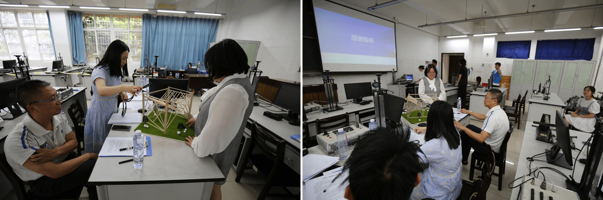 6月8日决赛当天,各参赛队伍带着精心准备的作品与实验成果亮相。选手们通过精彩的现场展示与细致的讲解,将力学原理与创新设计完美结合。评委们从创新性、实用性、技术难度等多个维度对作品进行了严格评审。