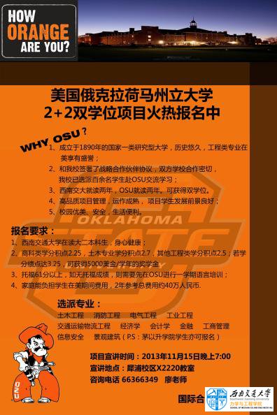 转国际处《关于美国俄克拉荷马州立大学2+2项目宣讲会的通知》