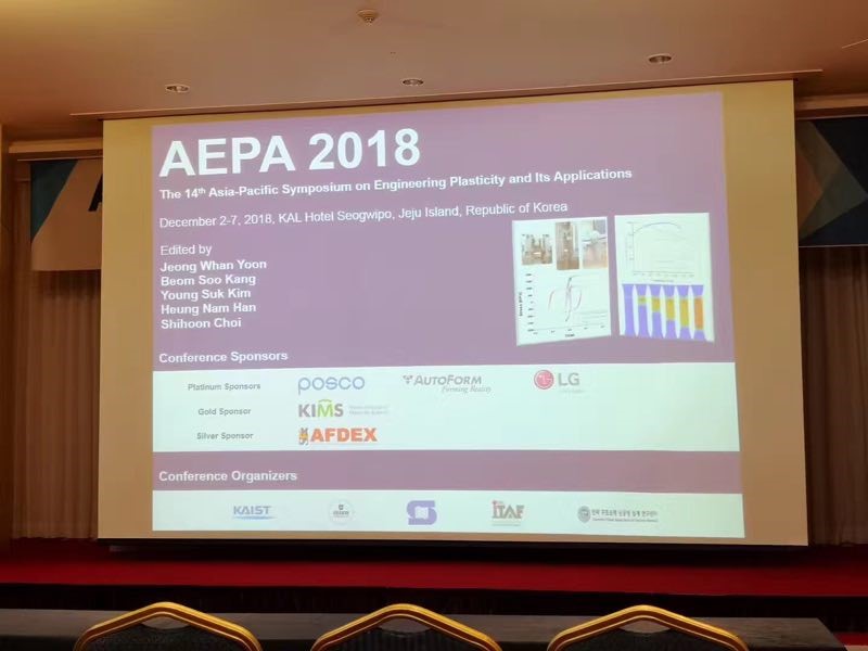 第14届亚太工程塑性及其应用研讨会于2018年12月2日至7日在韩国济州岛召开,该会议是由香港理工大学李荣彬教授与清华大学徐秉业教授等发起的两年一次的学术例会,此前曾在广岛(2016年),高雄(2014年),新加坡(2012年)和悉尼(2010年)等亚太地区举办是国际工程塑性领域的盛会。本次会议主题为成型过程、材料力学行为及成型加工领域,吸引了来自韩国、日本、中国、澳大利亚和美国等地区约200位专家学者参加。