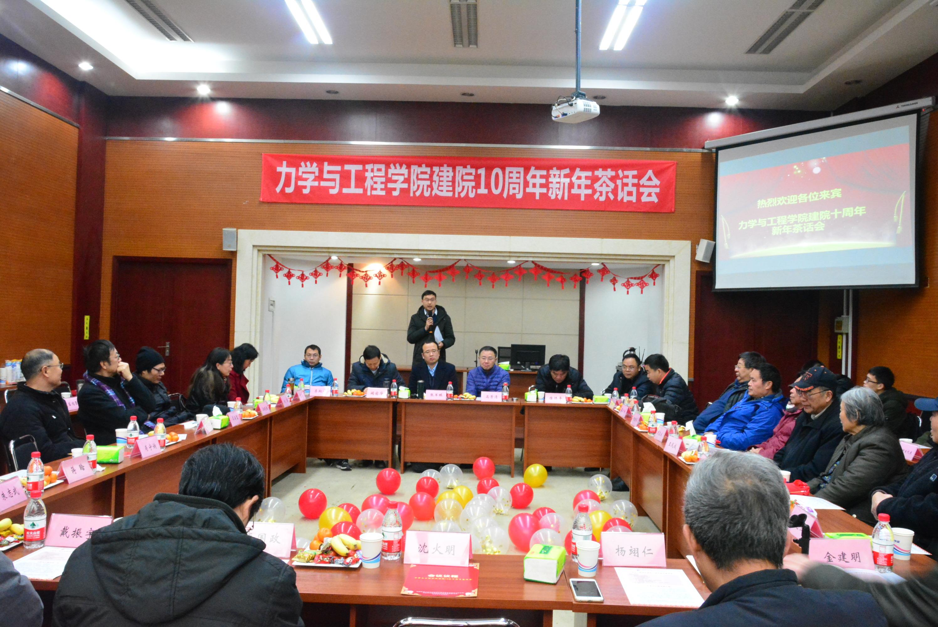 2018年12月29日,力学与工程学院在九里校区1号综合楼240会议室举行了“建院10周年新年茶话会”。学院党政班子成员、工会主席、离退休教师代表、院友代表、教师代表、各系负责人、新入职教职工代表、学生代表等共同参加了茶话会。