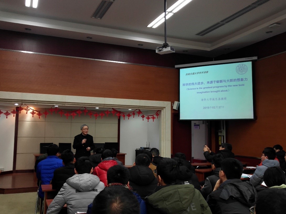 2019年2月27日下午,清华大学施惠基教授应邀来亚博官网进行学术交流,并在九里行政楼240学术报告厅做学术讲座,讲座题目为:科学的伟大进步,来源于崭新与大胆的想象力。力学与工程学院领导、青年教师,以及学院研究生等50余人参加了本次学术报告。