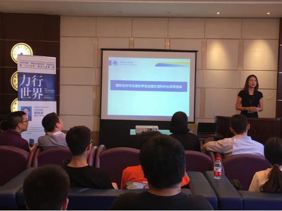 然后,廖莉老师从what、why、how三个关键词展开,为同学们讲述了当前高校学生国际化现状,建议同学们结合自身的专业,找到自身的兴趣,综合个人多方面因素做好海外学习准备。